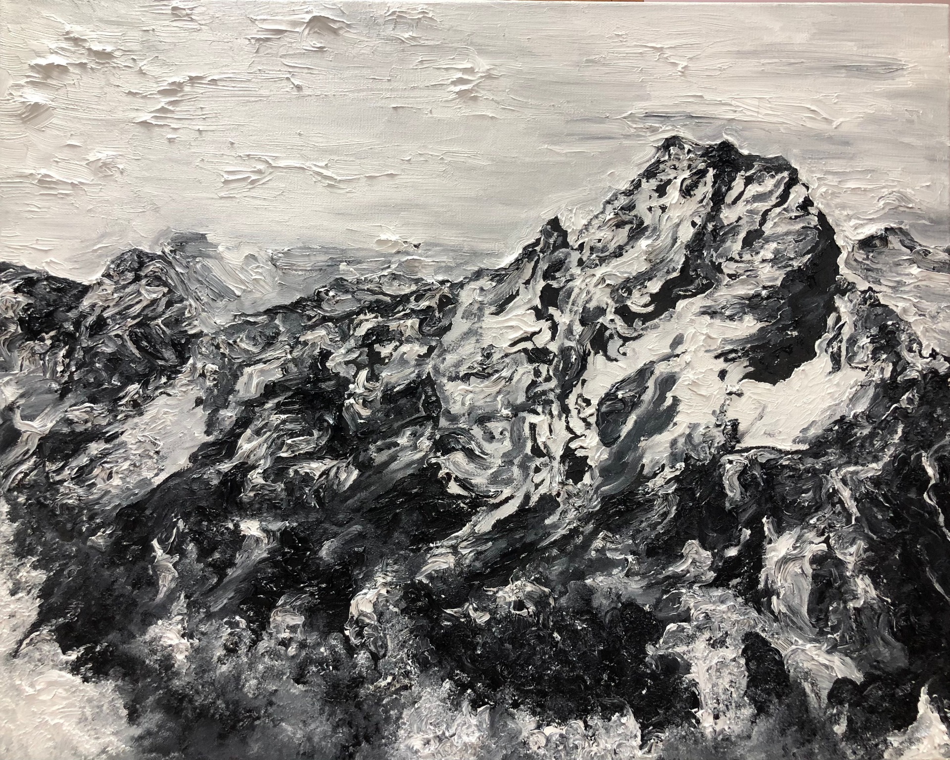 化出不同的樣貌。我以黑白二色,描述山不論何時,總是有明暗不斷循環變化。而在晨曦 ,更如剛睡醒的少女,迎接即將來臨的太陽,露出清新的嬌羞。